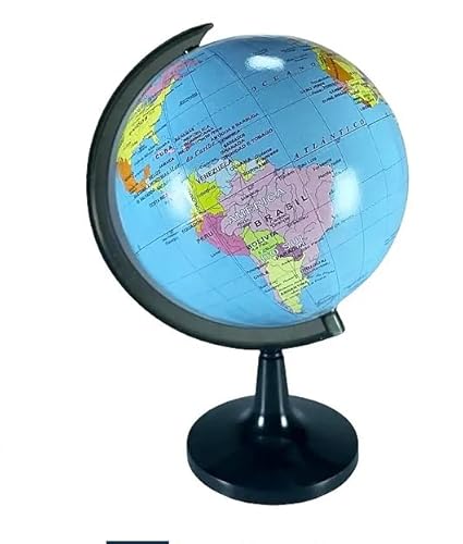 Globo Terrestre Político Pequeno Azul Giratório Escolar Com um diâmetro de 14,2 cm este globo compacto é perfeito para mesas de estudo, escritórios .